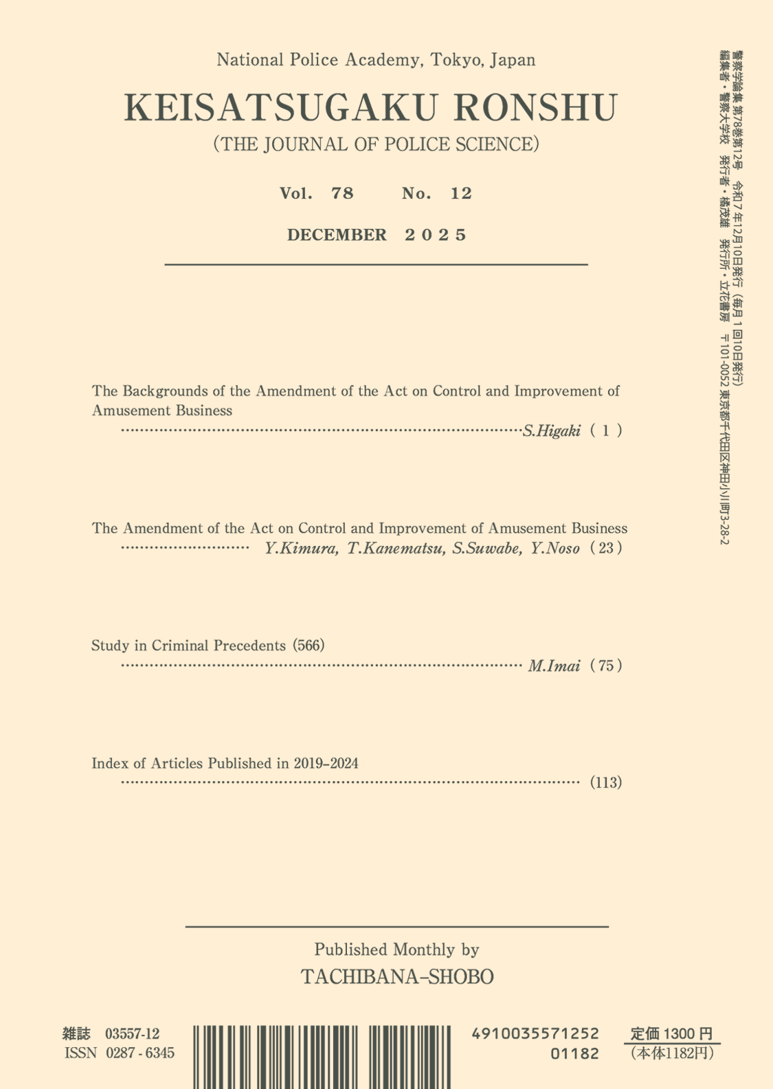 ホーム > 月刊誌 > 警察学論集2025年12月号(第78巻第12号)
