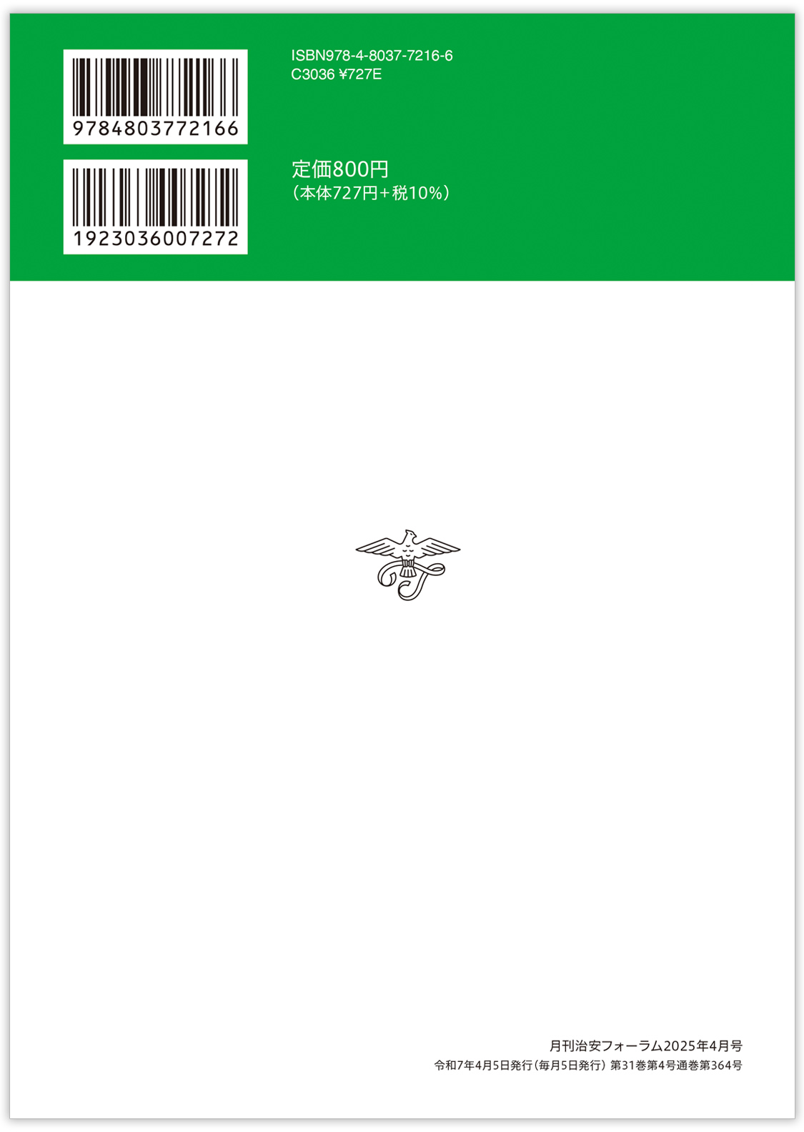 ホーム > 月刊誌 > 月刊 治安フォーラム2025年4月号(第31巻第4号)